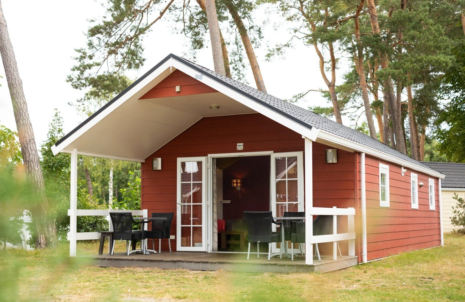 Onze lodges staan centraal op de camping, vlak bij het zwembad en de Plaza, en zijn volledig uitgerust voor een zorgeloos verblijf.