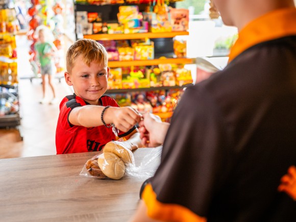 De kampwinkel is dagelijks geopend van Pasen tot eind september.